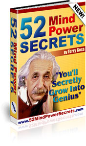 "Hi Terry, I love your e-books! Especially the 52 Mind Power Secrets. They've really helped me out a lot. Now when tormenting thoughts start flooding my mind, I find myself thinking, "hey, this is my kingdom and I'll have none of those thoughts." Then I banish them all.